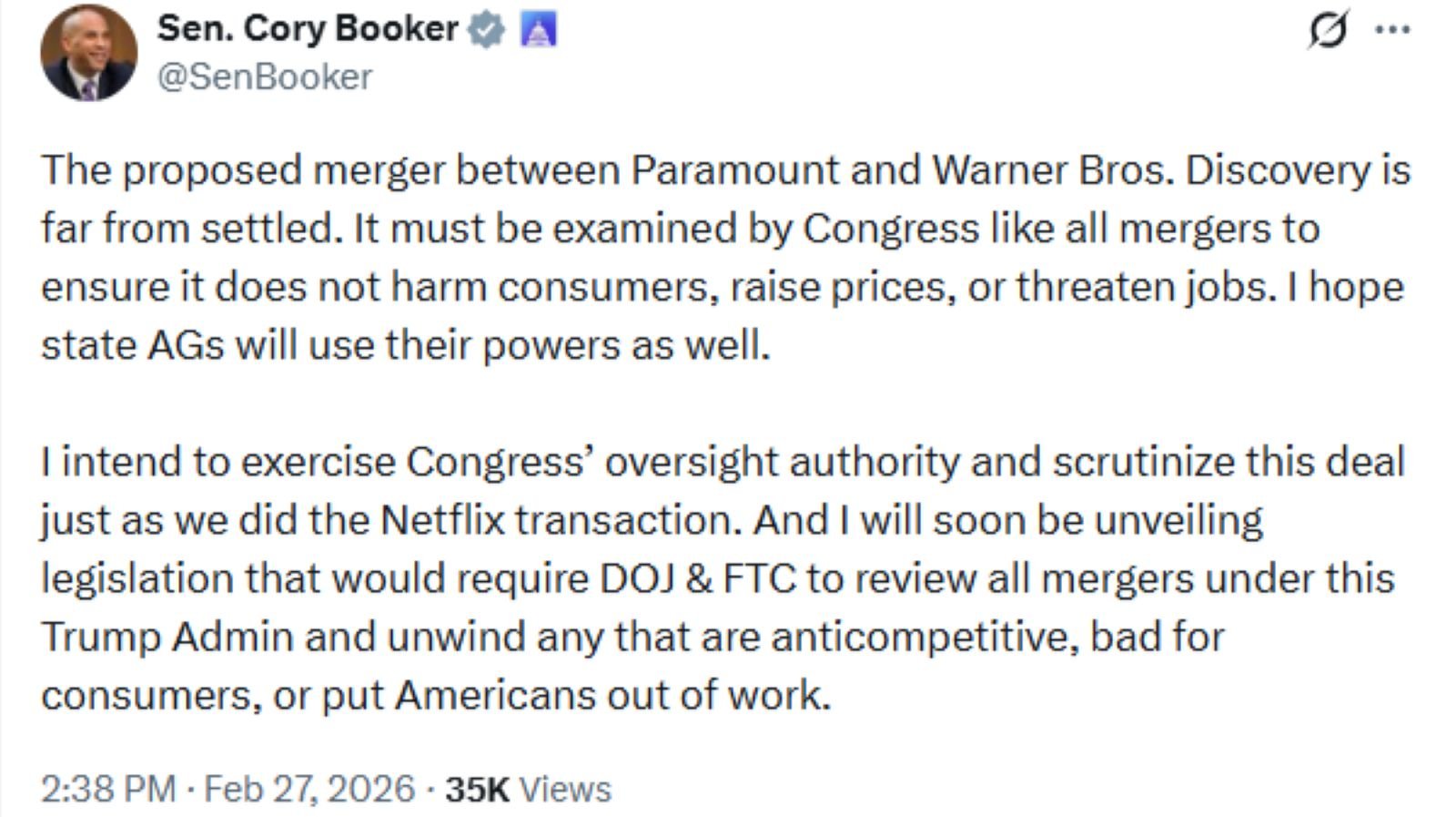 Then there’s the political variable. Trump publicly weighed in on the earlier Netflix-WBD proposal, at one point saying he would be involved before later saying the Justice Department should handle it. Critics like Warren are framing this merger as a test of whether antitrust enforcement stays insulated from politics.